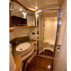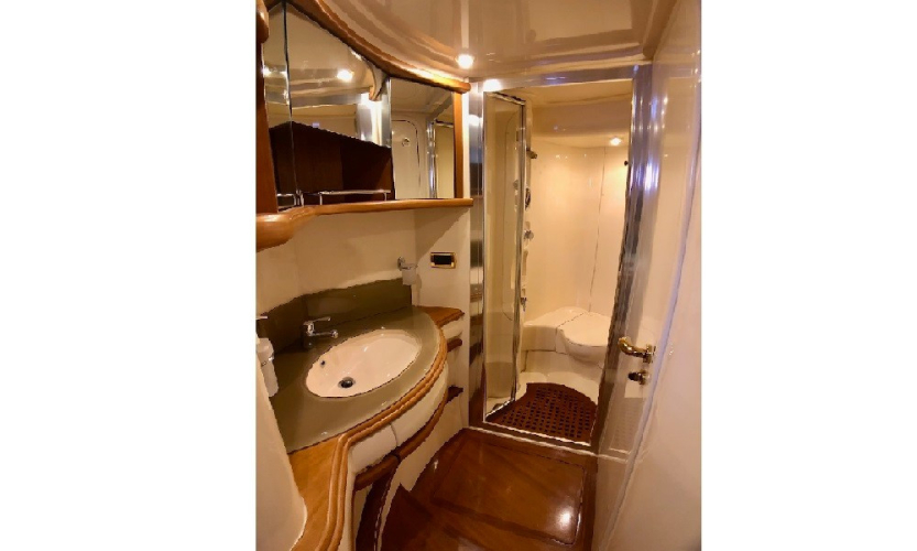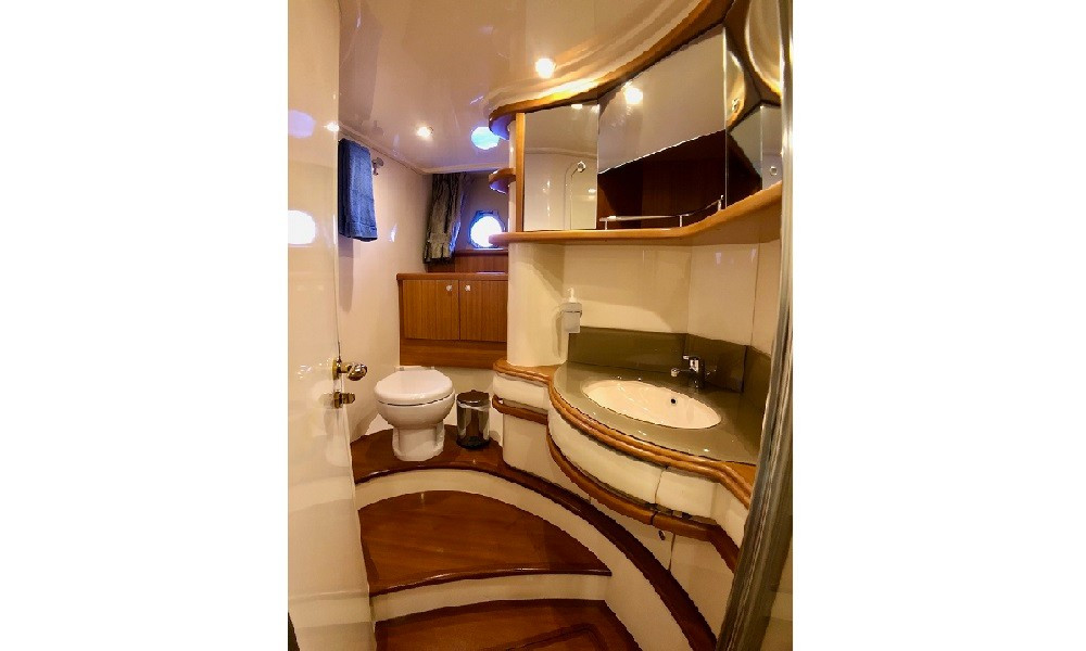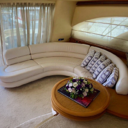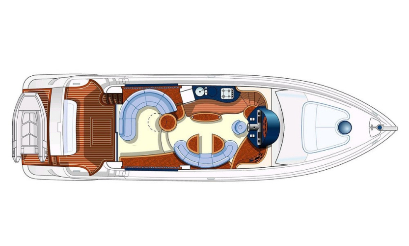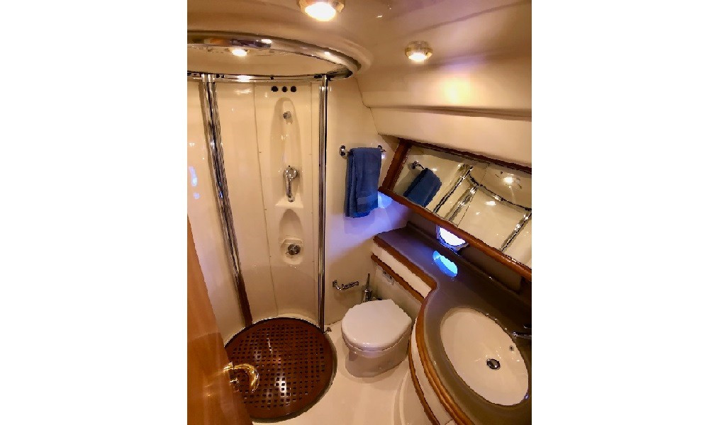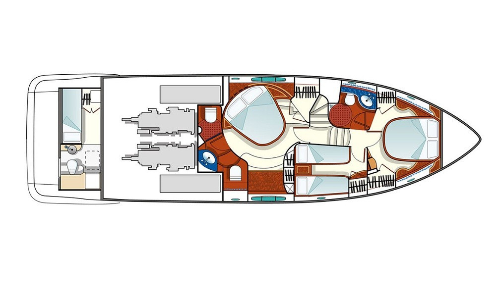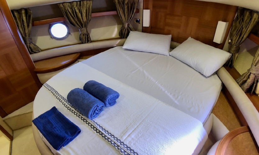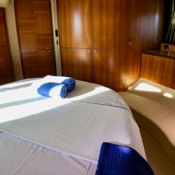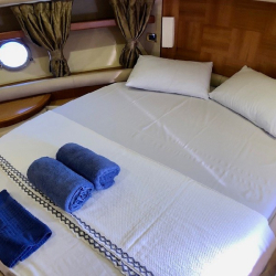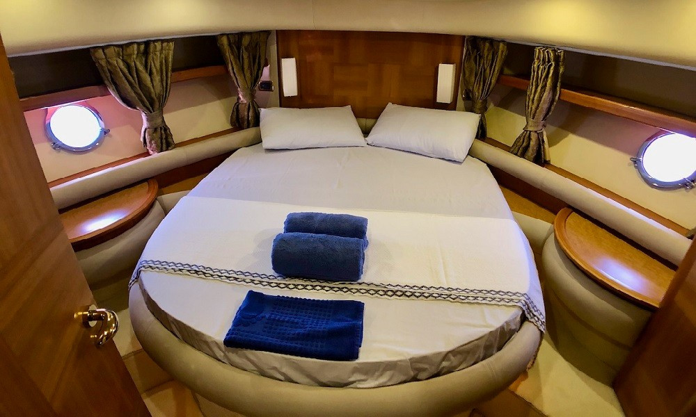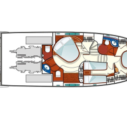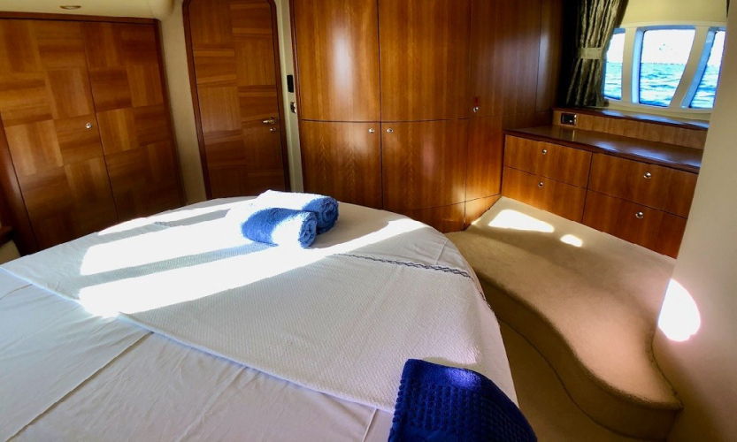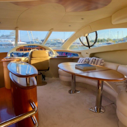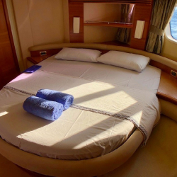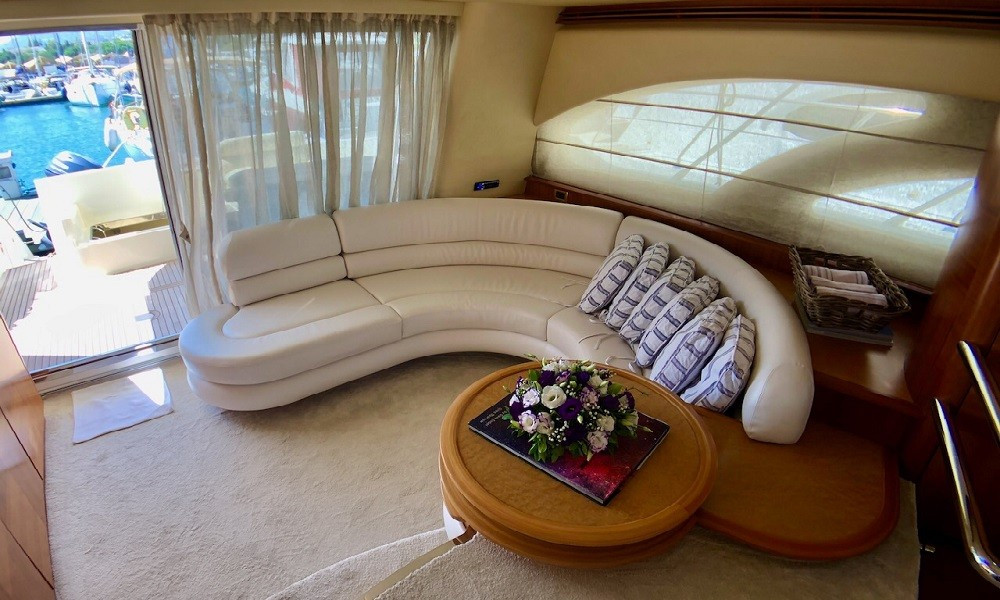 Her kabinde klima, duşakabinli banyo ve saç kurutma makinesi gibi detaylar düşünülmüş olup, salonda yer alan yemek masası, oturma alanı ve LCD TV ile konfor üst seviyeye taşınmıştır. Flybridge ve arka güvertede yer alan oturma alanları, mavi yolculuk boyunca rahat vakit geçirmenizi sağlar.
