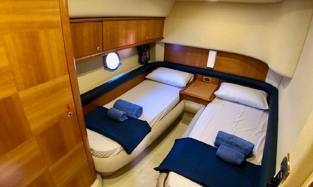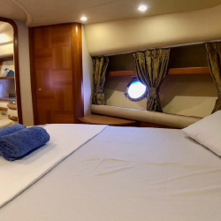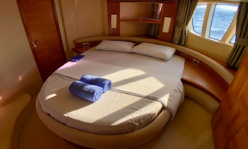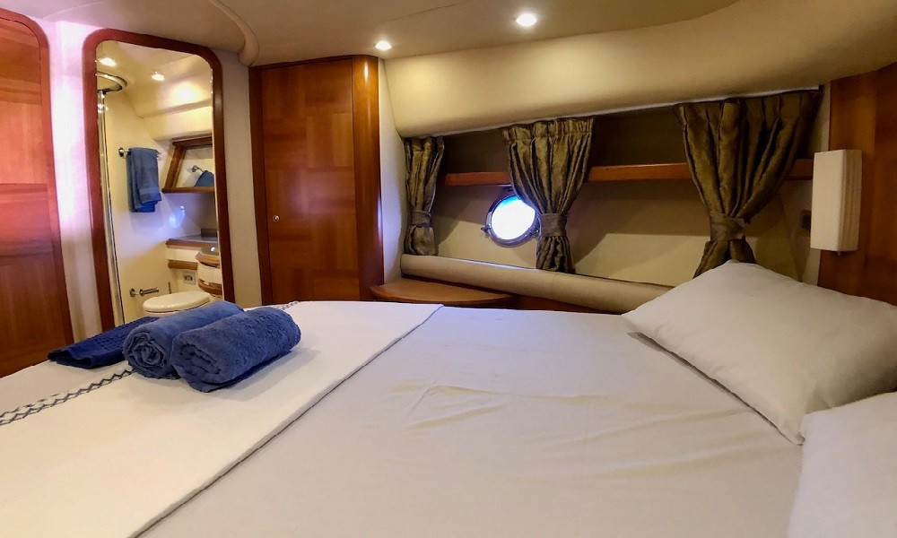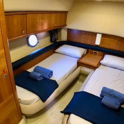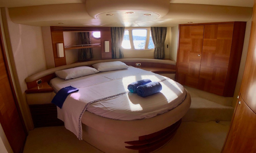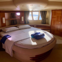 Bodrum çıkışlı lüks Azimut 55 Motoryat, 17 metre uzunluğu ve 3 konforlu kabiniyle 6 kişiye kadar konaklama imkânı sunar. 1 Master, 1 VIP ve 1 Twin kabinden oluşan yapısıyla hem aileler hem de arkadaş grupları için ideal bir tercihtir.