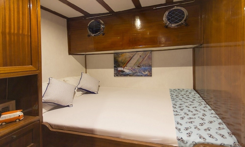 3 Double Kabin: Tüm kabinlerde klima, duşa kabinli banyo, WC, banyo ve el havluları yer almaktadır. Klima kullanımı günlük 4–6 saat ile sınırlıdır.