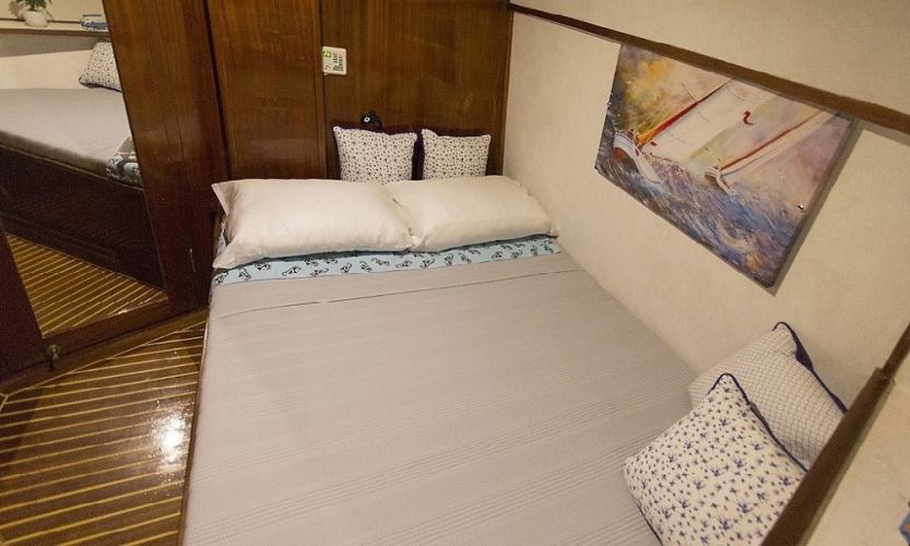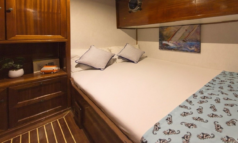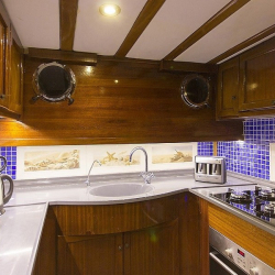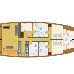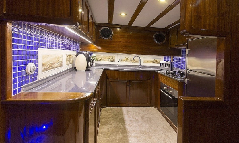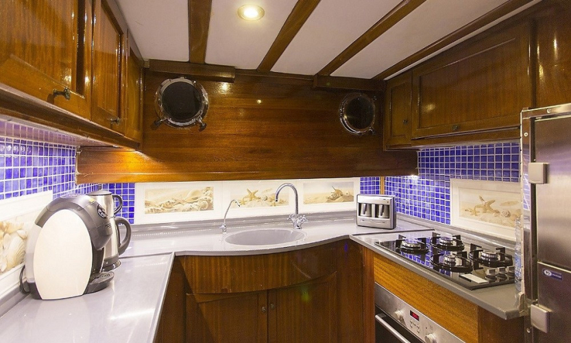 Donanım: Tam güvenlik ekipmanları, tam donanımlı mutfak, yelken ve navigasyon ekipmanları, can yelekleri, yangın söndürücüler, internet ve sıcak su sistemi mevcuttur.