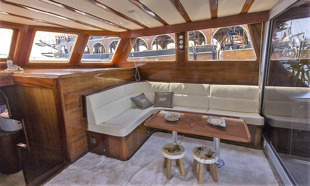 Cekin Gulet, 19 metrelik uzunluğu ve 3 klimalı kabiniyle Göcek ve Fethiye çıkışlı mavi yolculuklar için konforlu bir seçenektir. Hem bakımlı yapısı hem de geniş güvertesiyle 6 kişiye kadar keyifli bir tatil imkânı sunar.