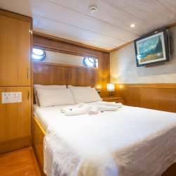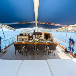Cemre Mila Gulet, 21 metre uzunluğu ve 4 kabiniyle Göcek ve Fethiye çıkışlı mavi yolculuklar için ideal bir tercihtir. Konforlu tasarımı ve sıcak atmosferiyle 8 kişiye kadar unutulmaz bir tatil deneyimi sunar.
