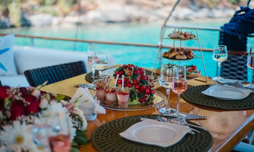 Cemre Mila Gulet, samimi atmosferi ve konforlu yapısıyla sevdiklerinizle birlikte Göcek ve Fethiye koylarını keşfetmek için sizi bekliyor.