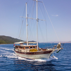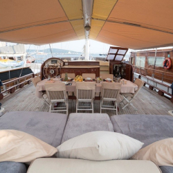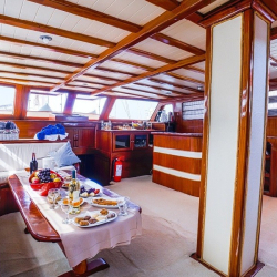 Elara Gulet, 24 metrelik zarif yapısı ve 2017 yenilemesiyle modernleştirilmiş iç tasarımıyla, 8 kişiye kadar özel gruplar için Bodrum, Marmaris, Fethiye ve Göcek çıkışlı mavi turlarınızda ideal bir tercihtir.