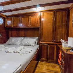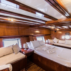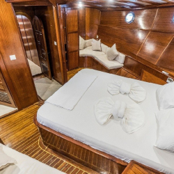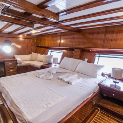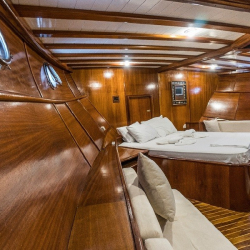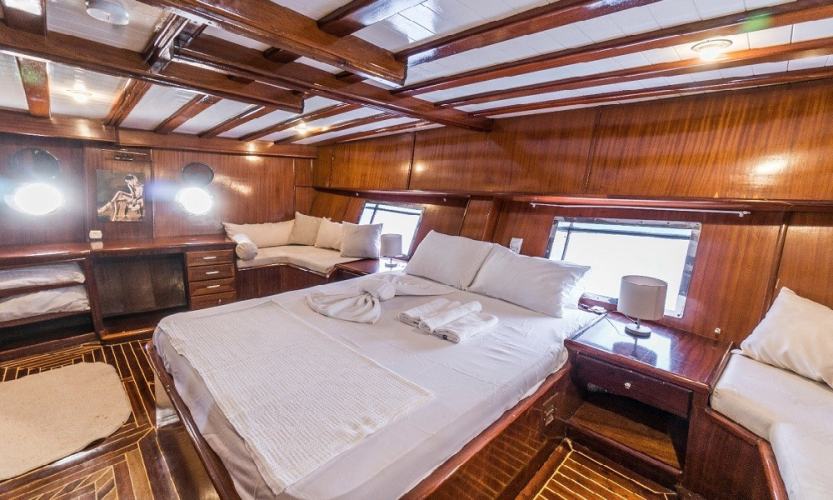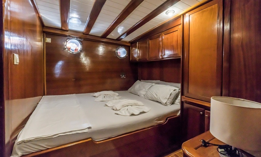2 Master + 2 Double olmak üzere toplam 4 kabin, her biri klimalı, duş ve WC’li şekilde donatılmıştır. Master kabinlerde ayrıca TV mevcuttur.