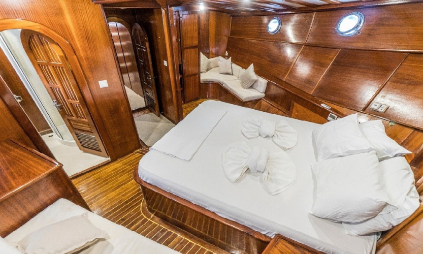 Elara Gulet’te minimum 3 kişilik mürettebat, ayrı yaşam alanlarında konaklayarak size özel ve huzurlu bir tatil sunar.
