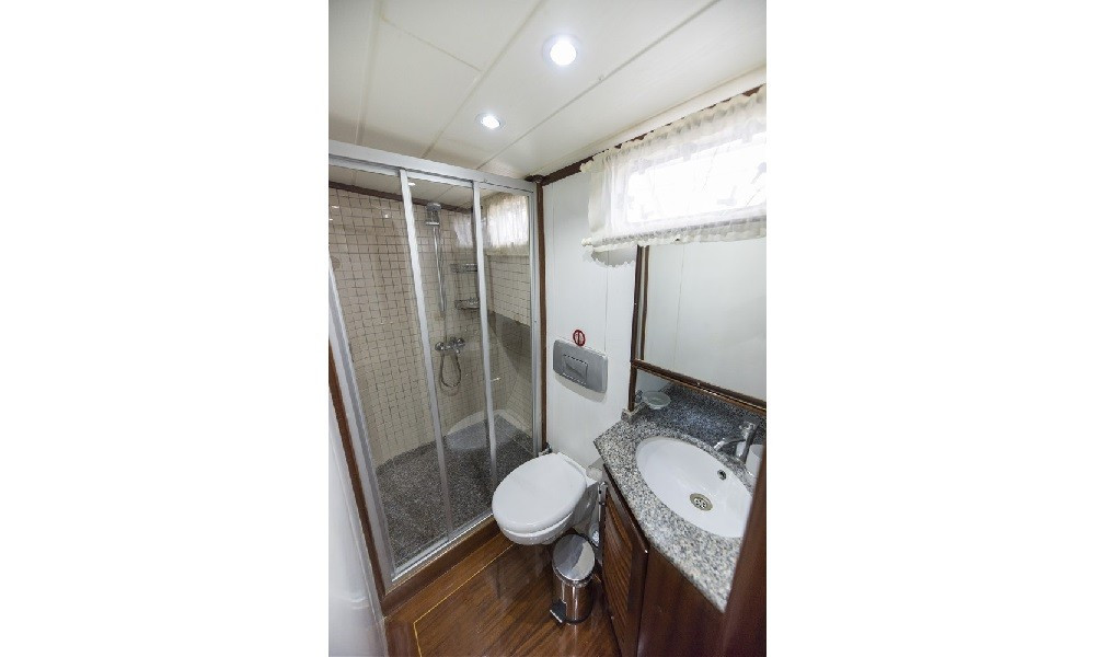 3 Kabin: 1 master ve 2 double kabin olmak üzere toplam 3 klimalı kabinde, duşakabinli banyolar, ev tipi tuvalet, saç kurutma makinesi, banyo ve el havluları ile konfor ön plandadır. Klima günlük 6–8 saat arası kullanılabilir.