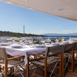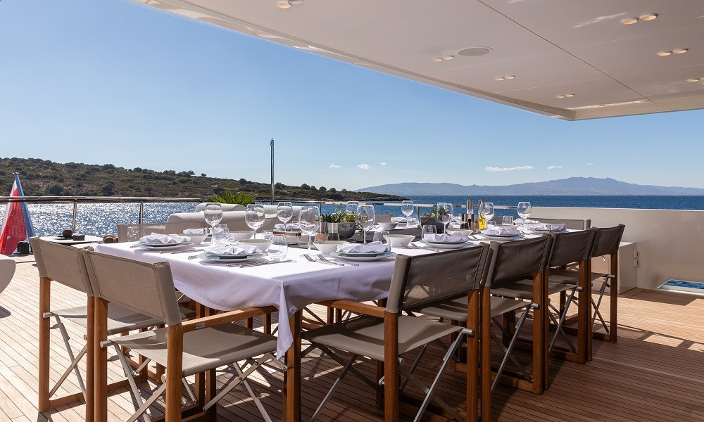 Siz hiç bir şeye karışmadan tatiliniz boyunca size tam pansiyon konaklama sunabiliriz. Bu durumda Standart, Lüks ya da Delüks menülerimizden birini tercih ederek kişi başı günlük 45 ile 65 Euro arasında değişen bir bedel ödeyerek alkollü içecekler hariç herşey dahil tatilinizi yapabilirsiniz. Alkollü içeceklerinizi dilediğiniz şekilde temin edip tekneye getirebilirsiniz.
