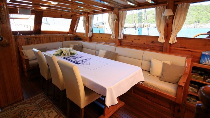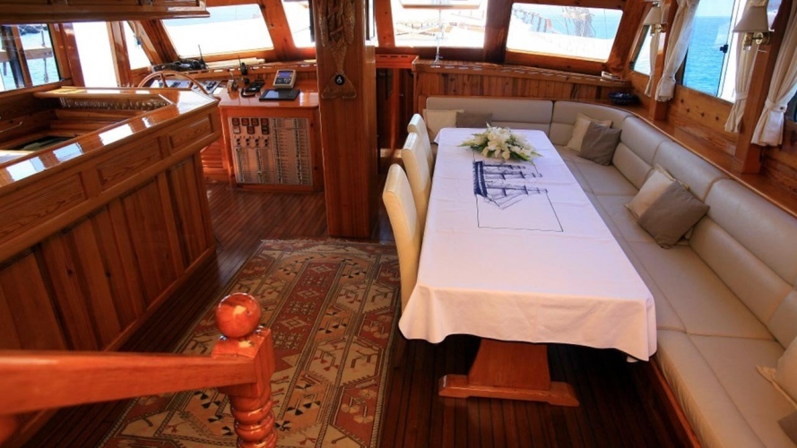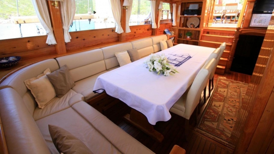 Ayrıca salonda LCD TV, DVD oynatıcı, müzik seti siz değerli mavi yolculuk konuklarımızın hizmetindedir.