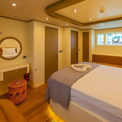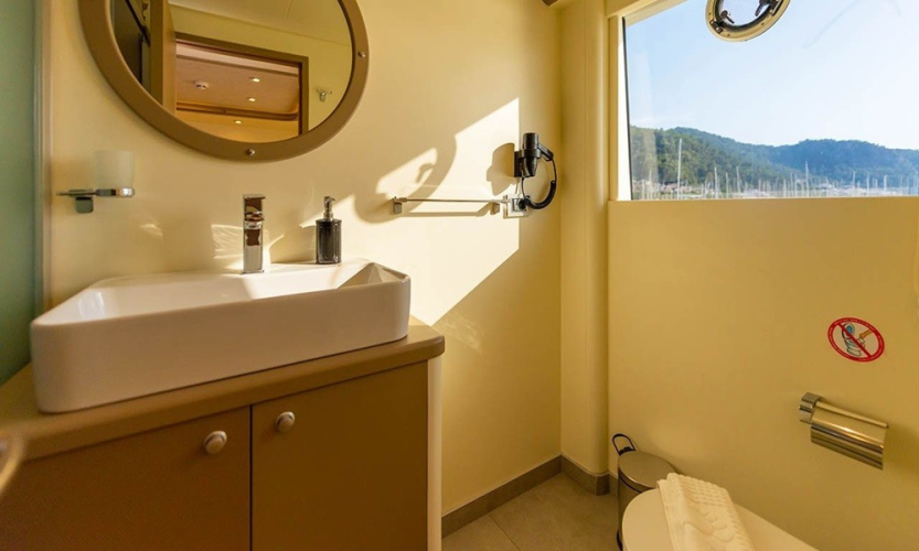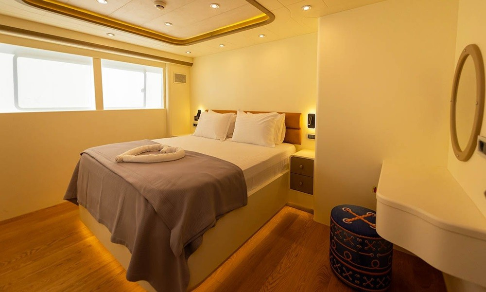 6 Kabin: 2 Master ve 4 Double kabin ile toplam 12 kişilik konaklama. Her kabinde TV, klima, duşakabinli banyo, saç kurutma makinesi, el & banyo havluları.