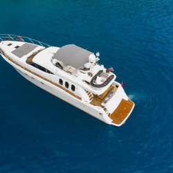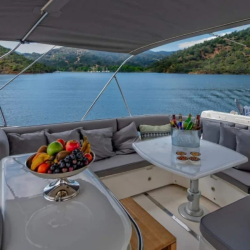 Princess Motoryat tik kaplı güvertede arka yemek alanı, ön güvertede güneşlenme minderleri, flybridge ve deniz merdiveni gibi tüm detaylar, konforlu bir dış mekan deneyimi sunar. Güvertede duş imkânı da mevcuttur.