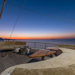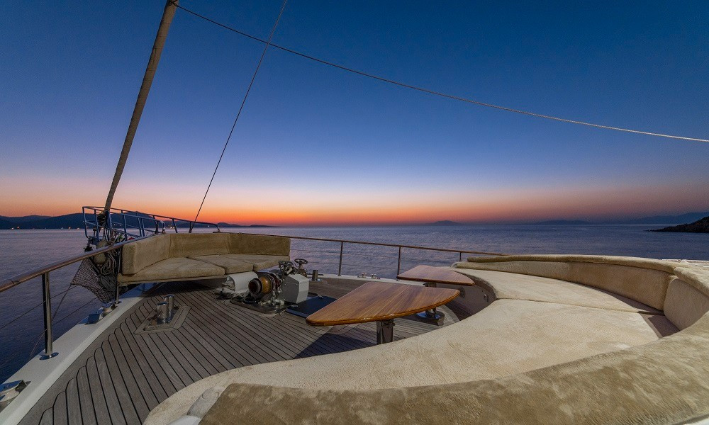 29 metrelik zarif tasarımıyla Queen of Sea Gulet, 10 kişilik kapasitesi ve profesyonel ekibiyle Akdeniz’in eşsiz koylarında konforlu ve keyifli bir mavi tur deneyimi sunuyor. Lüks detayları ve sıcak atmosferiyle, denizde geçirilen her anı unutulmaz kılıyor.