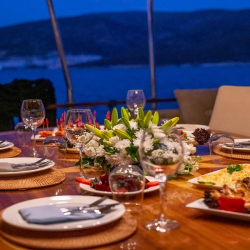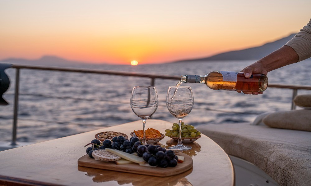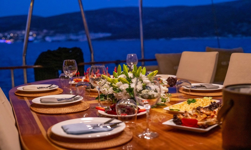 Siz hiç bir şeye karışmadan tatiliniz boyunca size tam pansiyon konaklama sunabiliriz. Bu durumda Standart, Lüks ya da Delüks menülerimizden birini tercih ederek kişi başı günlük 45 ile 65 Euro arasında değişen bir bedel ödeyerek alkollü içecekler hariç herşey dahil tatilinizi yapabilirsiniz. Alkollü içeceklerinizi dilediğiniz şekilde temin edip tekneye getirebilirsiniz.