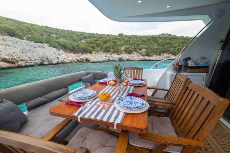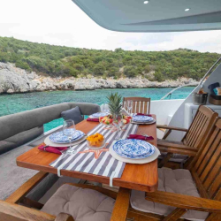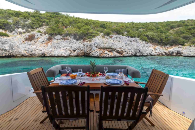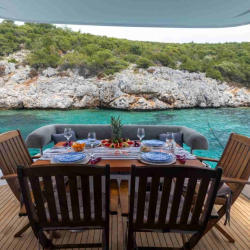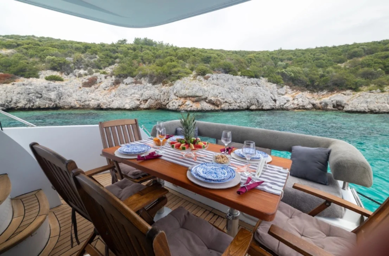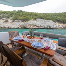 Siz hiç bir şeye karışmadan tatiliniz boyunca size tam pansiyon konaklama sunabiliriz. Bu durumda Standart, Lüks ya da Delüks menülerimizden birini tercih ederek kişi başı günlük 45 ile 65 Euro arasında değişen bir bedel ödeyerek alkollü içecekler hariç herşey dahil tatilinizi yapabilirsiniz. Alkollü içeceklerinizi dilediğiniz şekilde temin edip tekneye getirebilirsiniz.