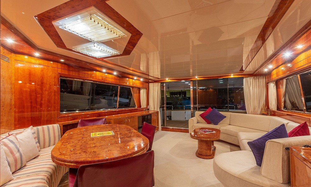 22 metre uzunluğundaki San Lorenzo 72 Motoryat, şık tasarımı ve geniş iç hacmiyle Göcek, Bodrum ve Marmaris çıkışlı yat kiralama taleplerinizde öne çıkan lüks bir seçenektir. 4 kabiniyle 8 kişiye kadar konaklama imkânı sunan bu motoryat, hem dinlenmek hem de eğlenmek isteyen misafirler için ideal.