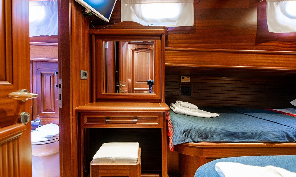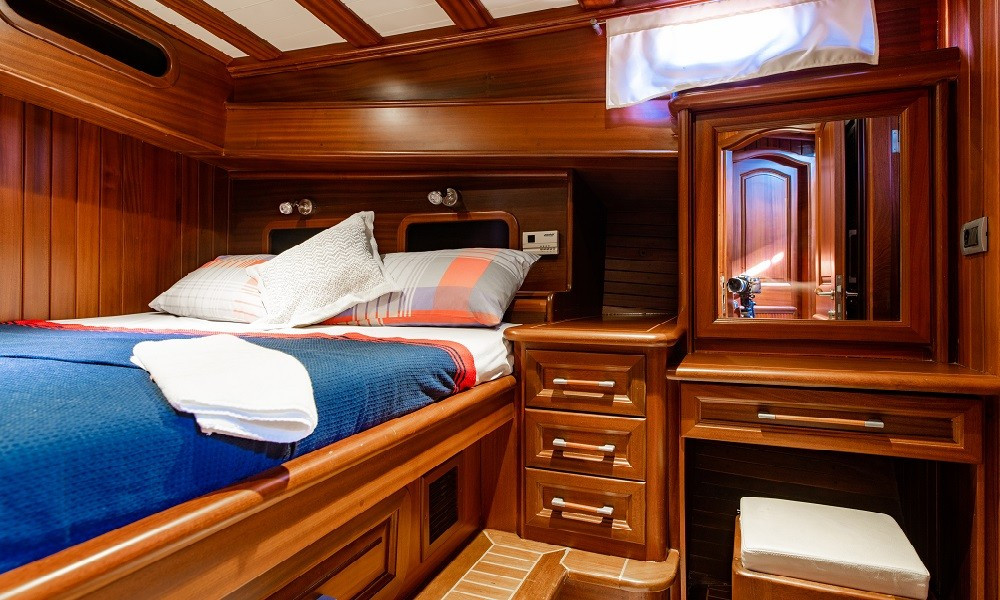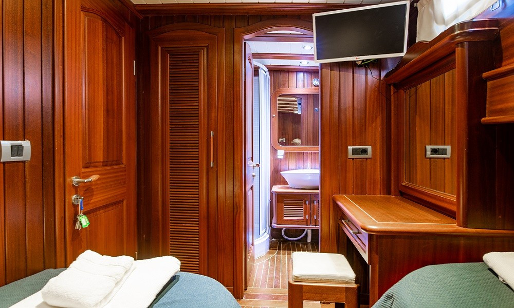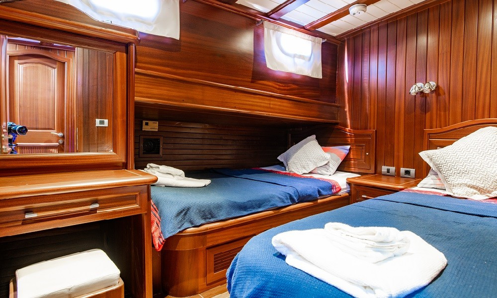 3 double ve 1 twin kabinden oluşan toplam 4 konforlu kabinde; klima, TV, duşakabinli özel banyolar, saç kurutma makinesi ve tüm temel ihtiyaçlar yer almaktadır. Salonda ise TV, müzik sistemi, oturma grubu ve masa bulunmaktadır. Klima kullanımı günlük 6-8 saatle sınırlıdır.