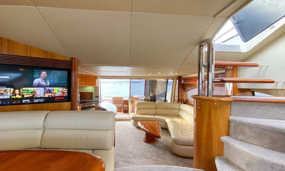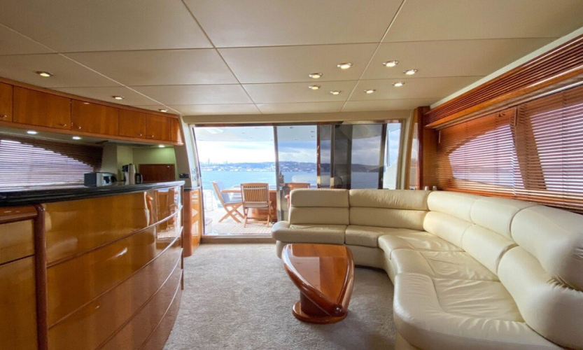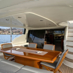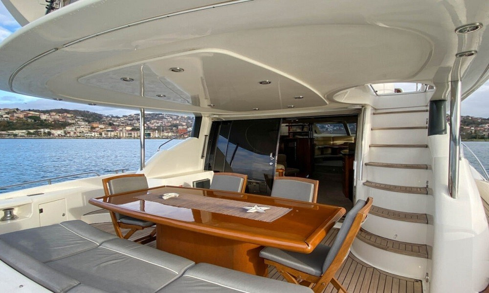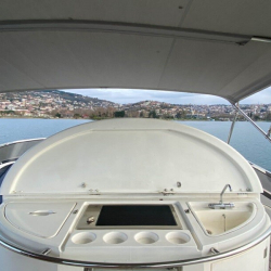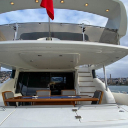 Sunseeker Manhattan 74 Motoryat, tik ağacıyla kaplı güvertesi, güneşlenme minderleri, flybridge alanı ve deniz merdiveniyle güneşin ve denizin tadını çıkarabileceğiniz özel alanlar sunar. Arka güvertede yer alan yemek masası, akşam yemeklerinizi eşsiz manzaralar eşliğinde yemenizi sağlar.