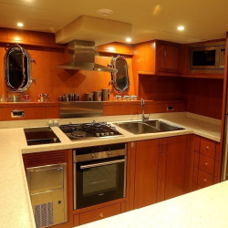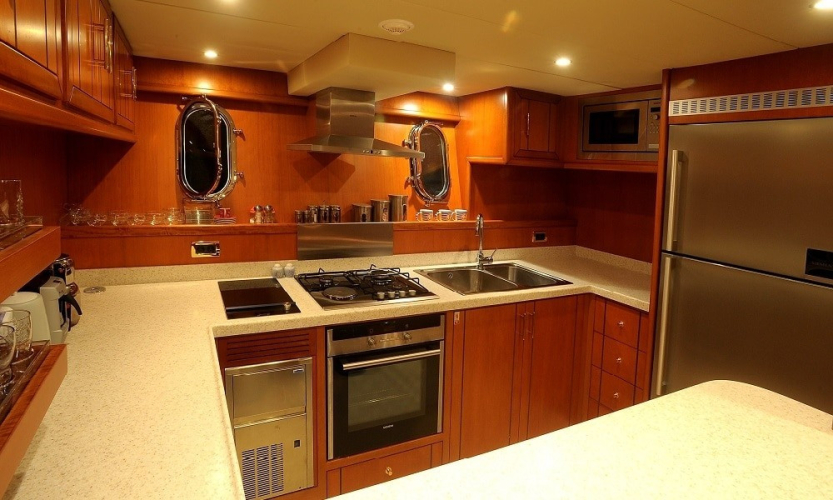 Fırın, buzdolabı, derin dondurucu, meşrubat soğutucu, buz makinesi, kahve makinesi, filtre kahve makinesi ve espresso makinesi gibi eksiksiz mutfak ekipmanlarıyla donatılmıştır.